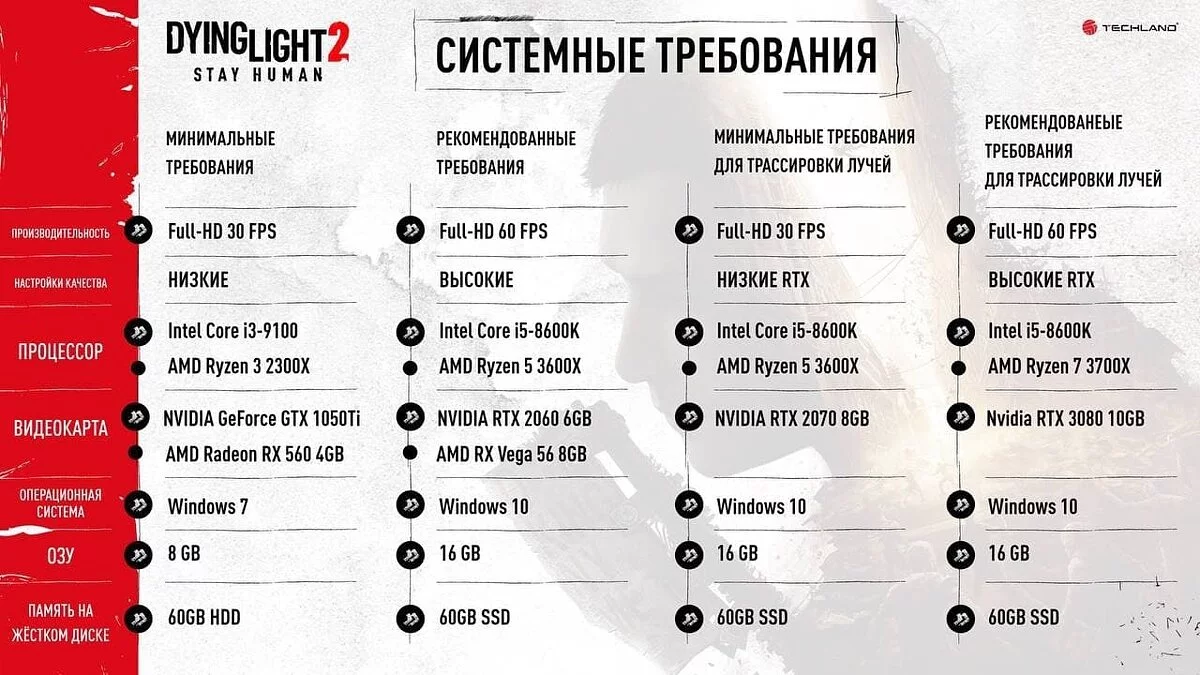 Windows 7, GTX 1050 Ti и 8 ГБ ОЗУ — появились подробные системные требования Dying Light 2