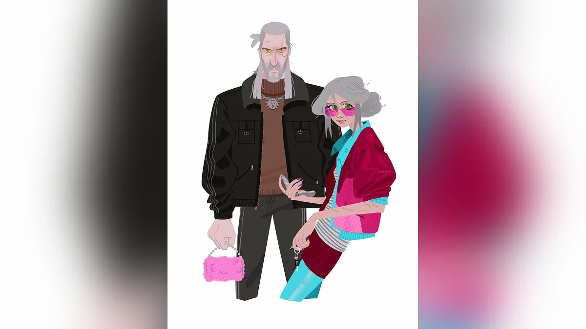 Девушка с ником adinskyy_ опубликовала рисунок, на котором показала, как Геральт и Цири из вселенной The Witcher могли бы выглядеть в 90-х годах прошлого столетия.