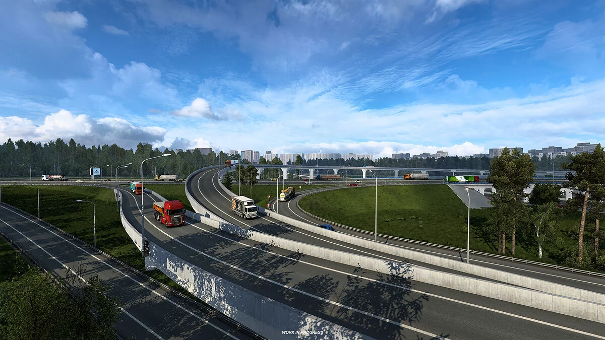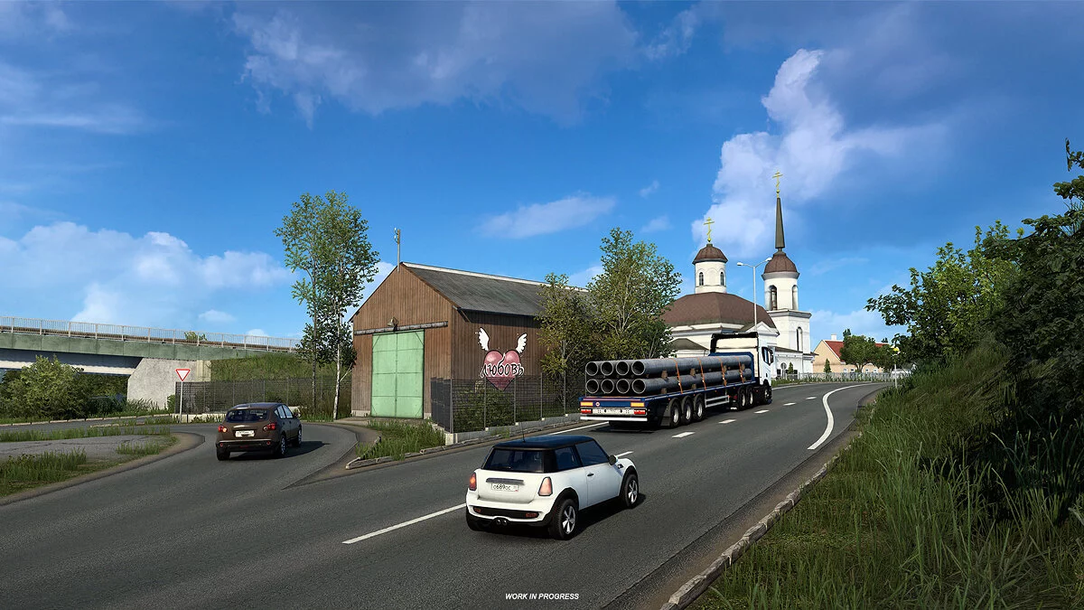 Студия SCS Software опубликовала ряд новых скриншотов будущего дополнения «Сердце России» для Euro Truck Simulator 2. На изображениях можно увидеть различные локации, мосты, дороги и прочее.