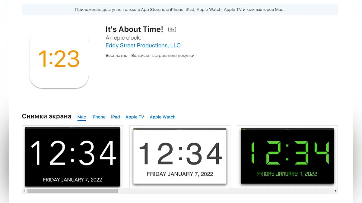 - It's About Time! — красивые часы с различными скинами (загрузить бесплатно).
