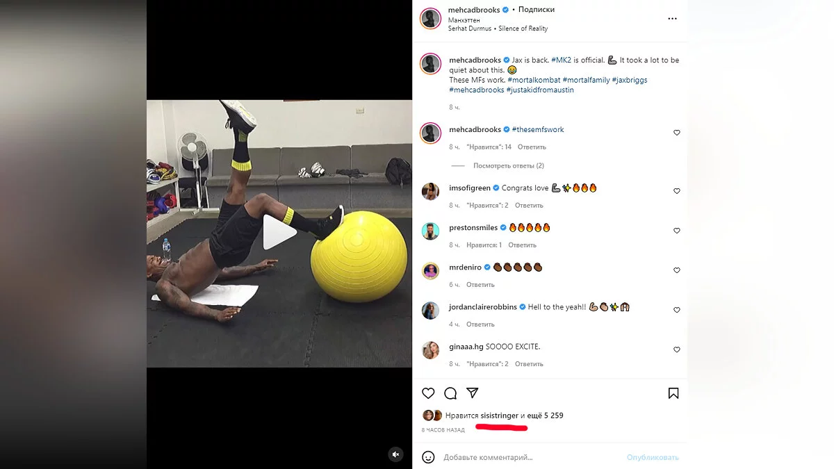 Совсем недавно издание Deadline сообщило о старте производства фильма «Мортал Комбат 2». Актер Мехкад Брукс (Mehcad Brooks), исполнивший роль Джакса в первой части, уже показал, как качает мышцы и тренируется к съемкам в продолжении.
