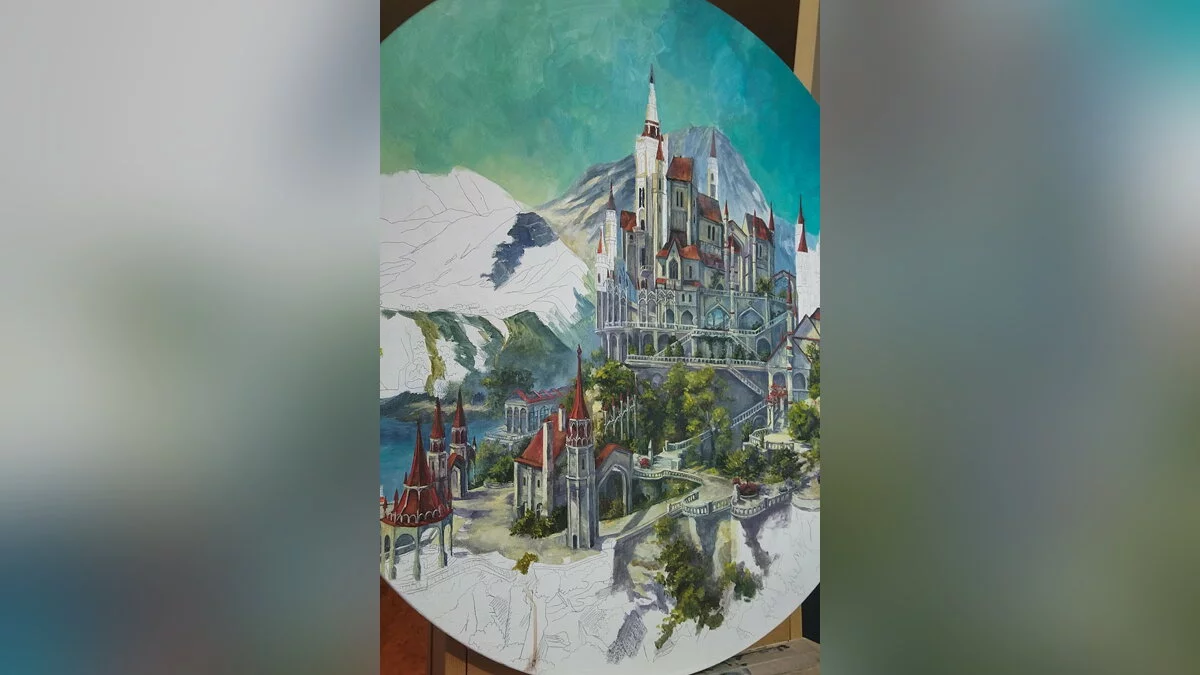 Девушка нарисовала картину по «Ведьмаку». На ней можно увидеть знаменитую локацию из The Witcher 3