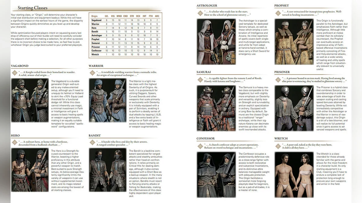 В сети появились страницы из официального руководства по прохождению Elden Ring. Помимо описания локаций и мира игры, в гайде есть информация обо всех классах — их аж десять штук.