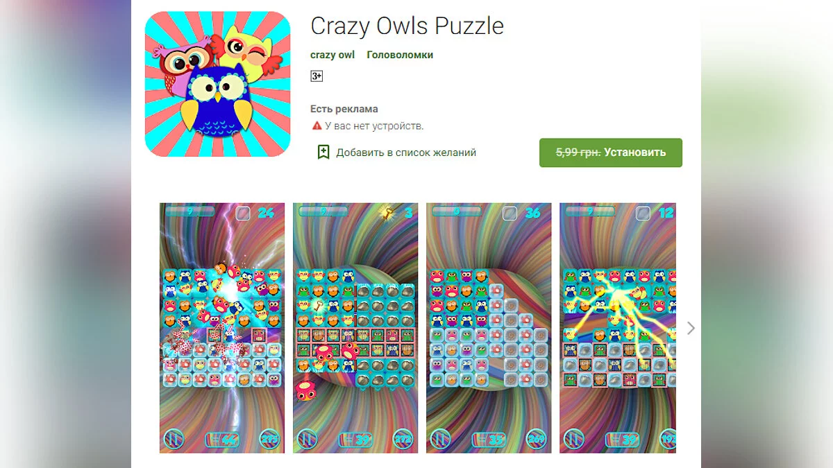 - Crazy Owls Puzzle — головоломка в формате «три в ряд», только про милых сов (загрузить бесплатно);