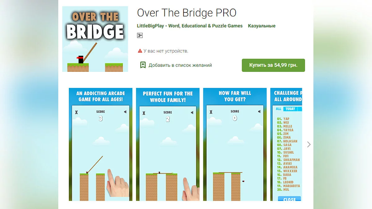 - Over The Bridge PRO — аркадная игра, в которой нужно строить мосты между платформами (загрузить бесплатно);