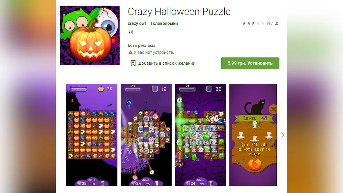 - Crazy Halloween Puzzle — головоломка в жанре «три в ряд» на тему Хэллоуина (загрузить бесплатно);