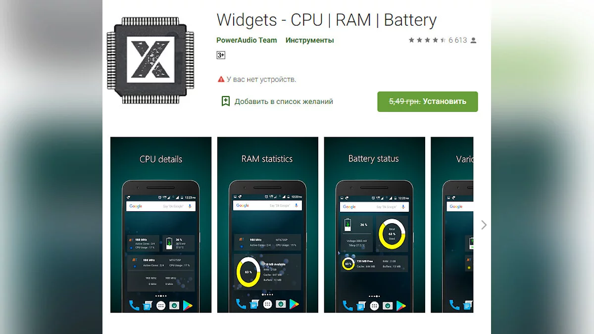 - Widgets — CPU RAM Battery — альтернативный виджет, позволяющий получать информацию о частоте процессора, аккумуляторе и потребляемой оперативной памяти (загрузить бесплатно);