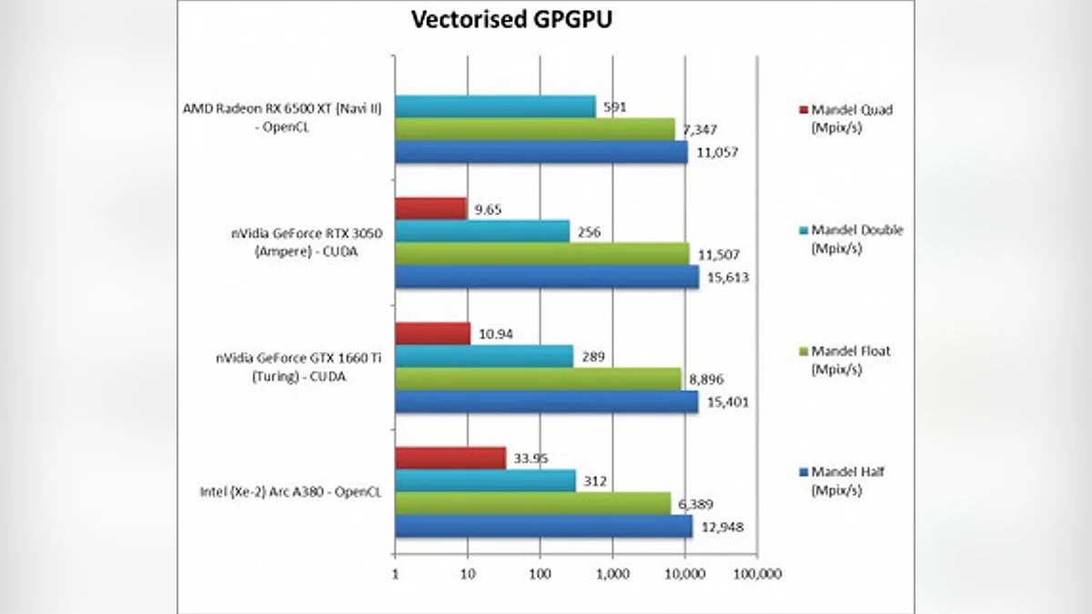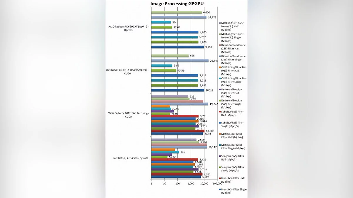 Судя по ним, в некоторых видах «синтетики» младшая карта выступает на уровне GeForce RTX 3050 и Radeon RX 6500 XT, в других же проигрывает. Данных об игровой производительности пока нет.