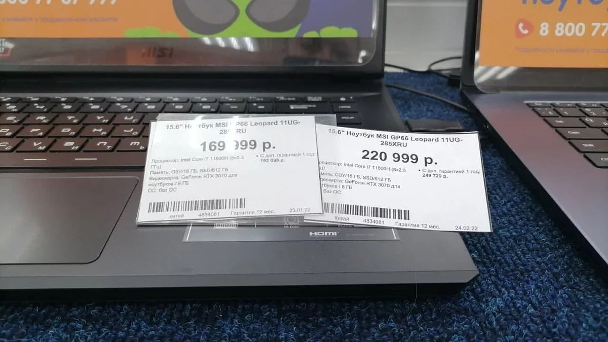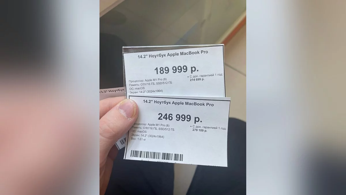 Согласно фотографии письма якобы для сотрудников магазинов, в первую очередь ценники меняют в «самых фокусных категориях». К примеру, ноутбук Apple MacBook Pro с 14-дююймовым дисплеем подорожал с 189 999 до 246 999 рублей.