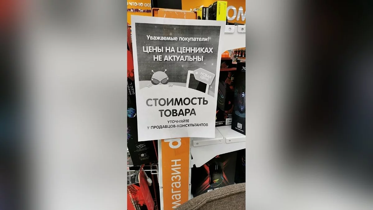 В одном из магазинов появилось объявление о том, что текущие ценники «не актуальны». Стоимость товара предлагают уточнять у продавцов.