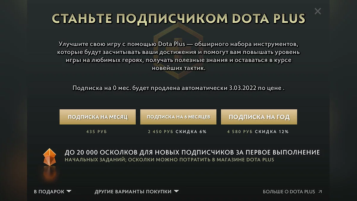 К примеру, стоимость подписки Dota Plus выросла на 40%. Один месяц теперь обойдется в 435 рублей (310 рублей до повышения), шесть месяцев — в 2450 рублей (1725 рублей до повышения), а 12 месяцев — в 4580 рублей (3250 рублей до повышения).