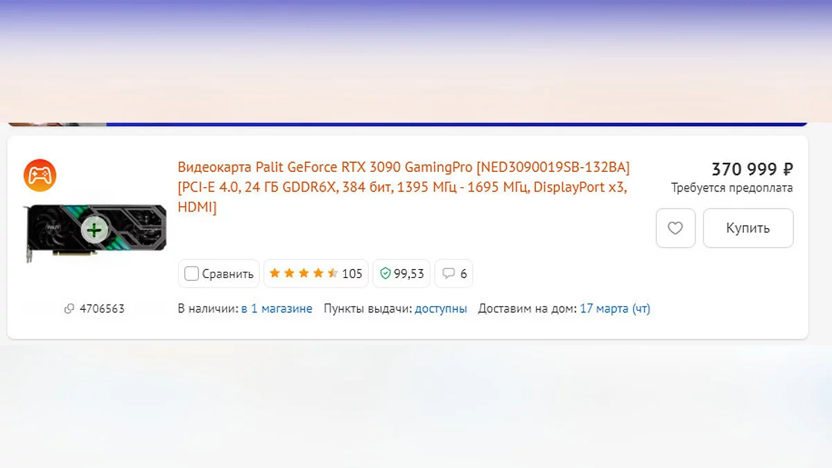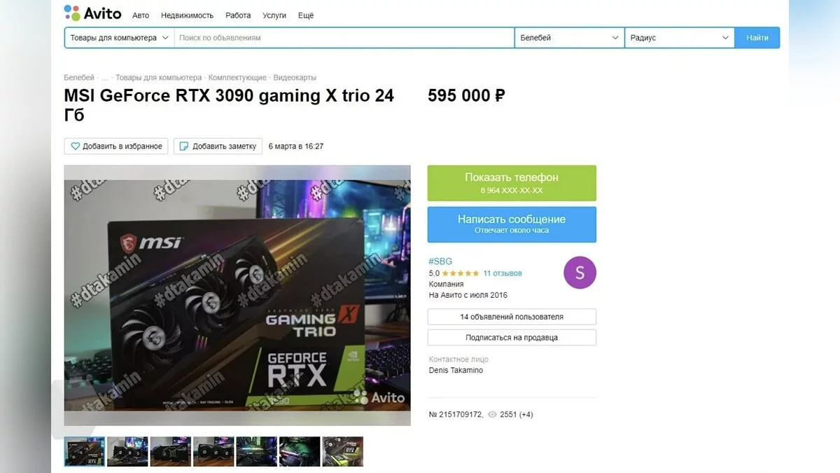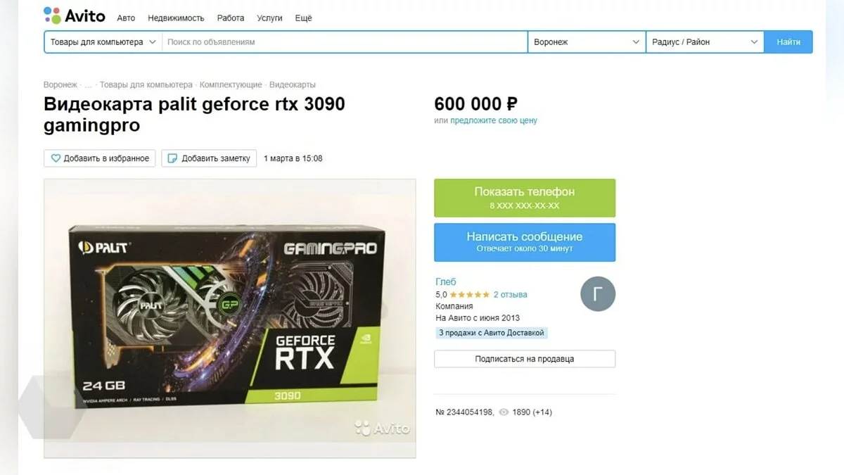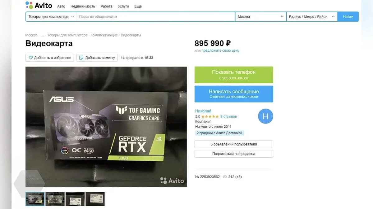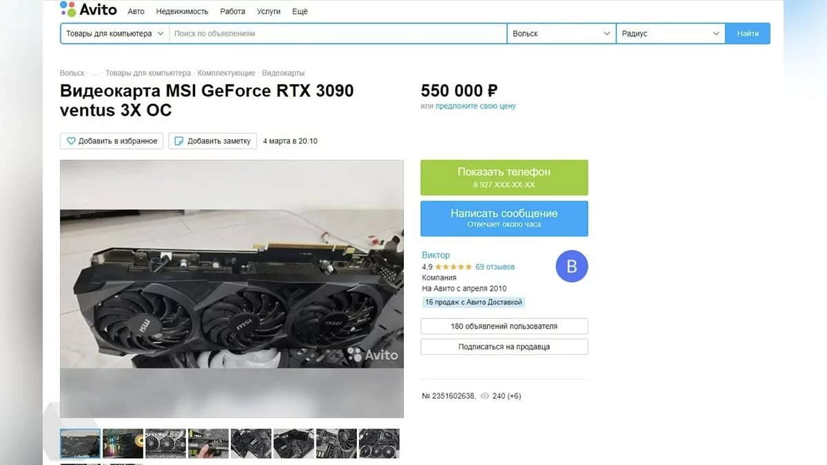 Перекупщики продают видеокарты NVIDIA RTX 3090 на «Авито» — цены от полумиллиона рублей и выше