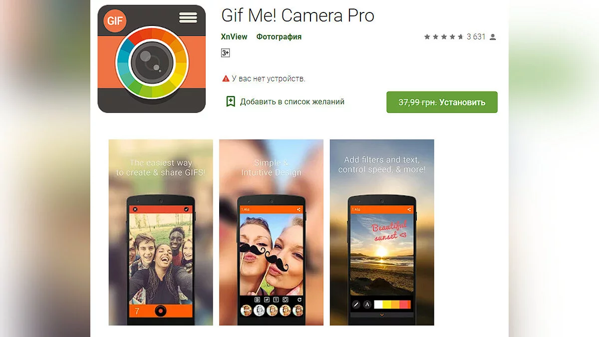 - Gif Me! Camera Pro — приложение, позволяющее превратить видео в гифку (загрузить бесплатно).