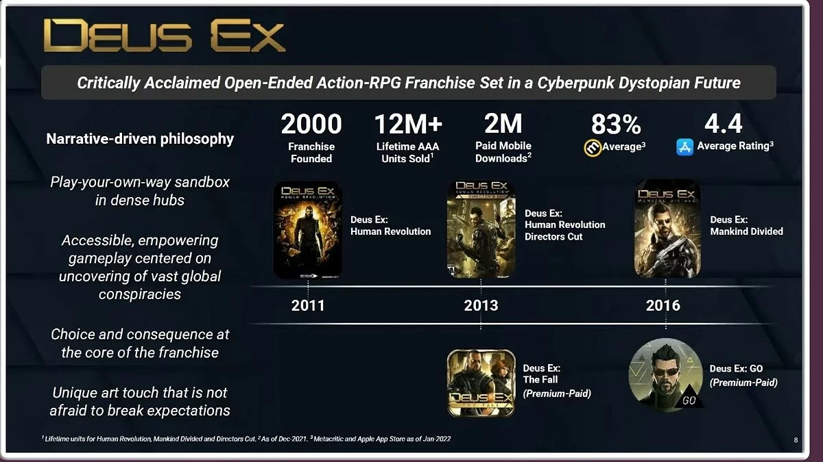 После того, как Embracer Group объявила о покупке нескольких студий у Square Enix, стало известно о возвращении франшизы Deus Ex. Об этом заявил глава Eidos Montreal Studio Дэвид Анфосси во время конференц-колла.