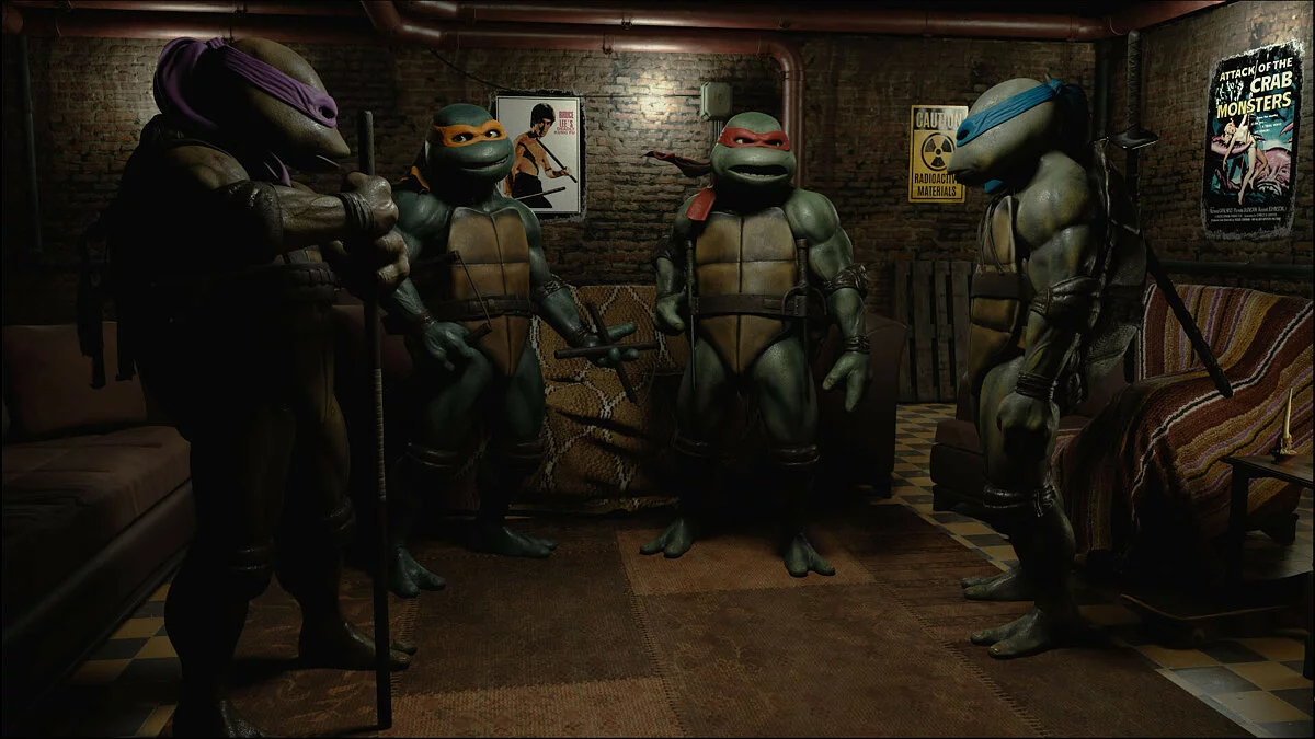 Энтузиаст с точностью воссоздал полноценные трёхмерные модели культовых героев и даже смоделировал сценку в их логове в канализации. Для этого он использовал программы zBrush, Substance Painter, Blender и Unreal Engine 4.