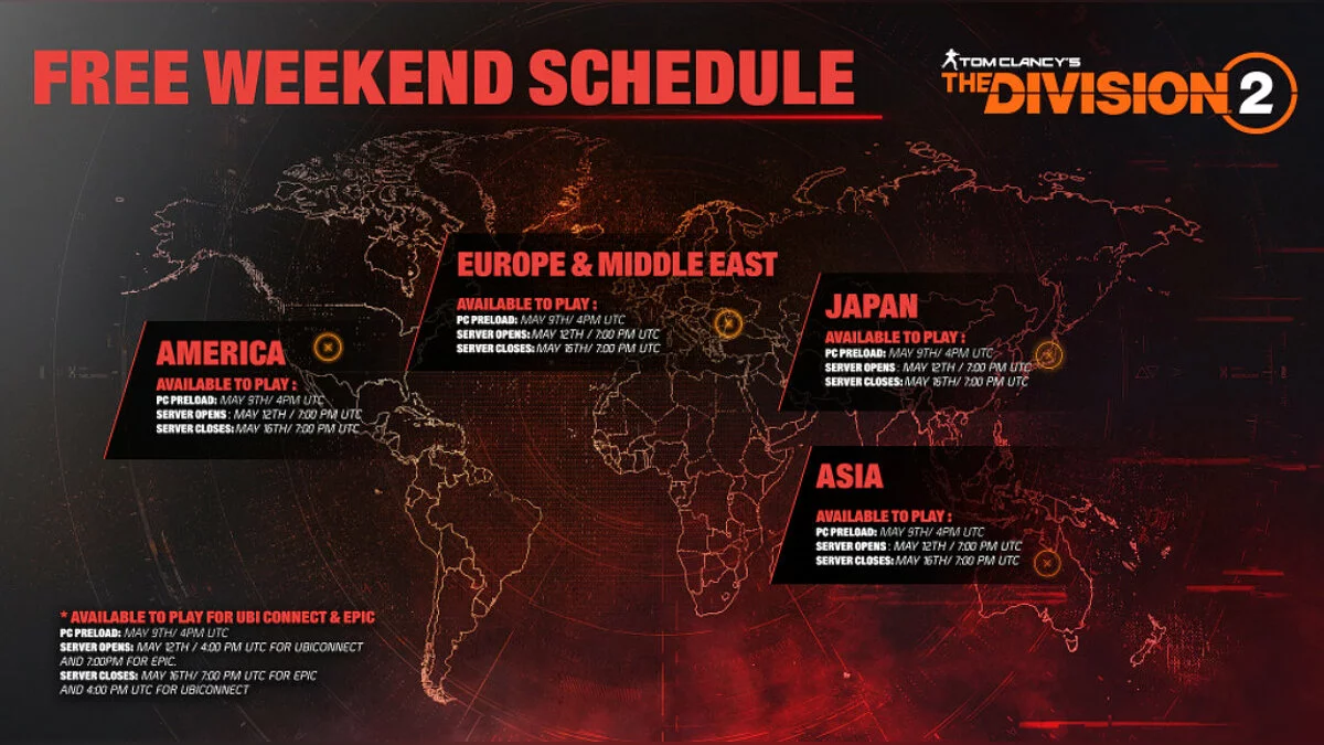 Бесплатные выходные в Tom Clancy's The Division 2 пройдут на PC (Ubisoft Connect и Epic Games Store), PS4, Xbox One и Google Stadia. Начать играть можно будет с 12 (серверы откроются в 22:00 МСК) по 16 мая.