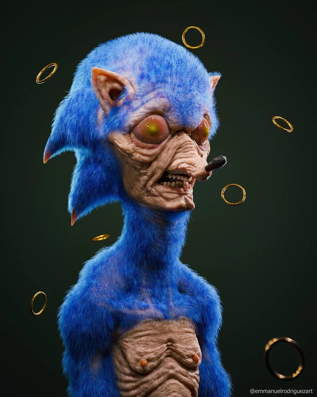 Если вы думали, что версия Соника из первого фильма до редизайна самое кринжовое, что могло произойти с синим ежиком, художник Эммануэль Родригес (Emmanuel J Rodriguez) недавно доказал обратное, показав популярного героя в еще более жутком виде.
