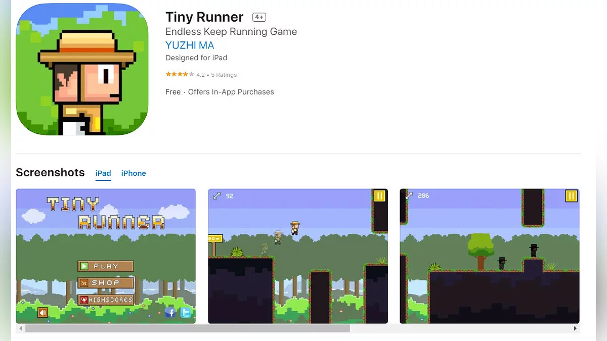 - Tiny Runner — пиксельный раннер с видом сбоку (загрузить бесплатно);