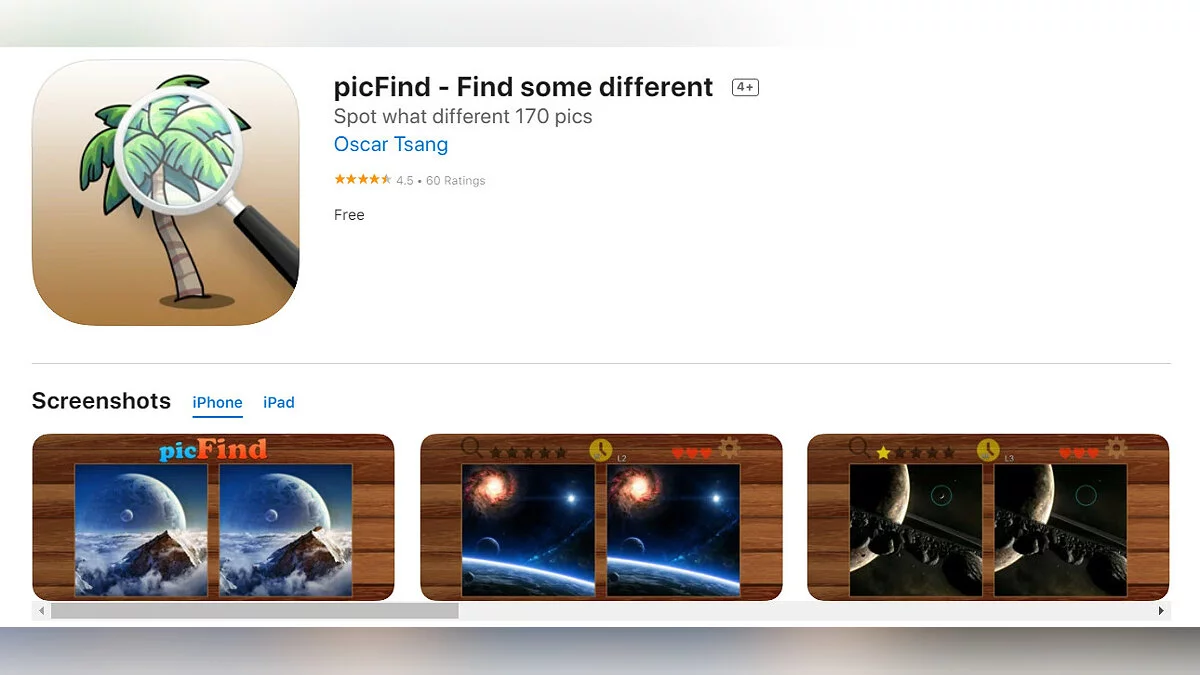 - picFind — Find some different — увлекательная игра на внимание, в которой нужно искать отличия в картинках (загрузить бесплатно);