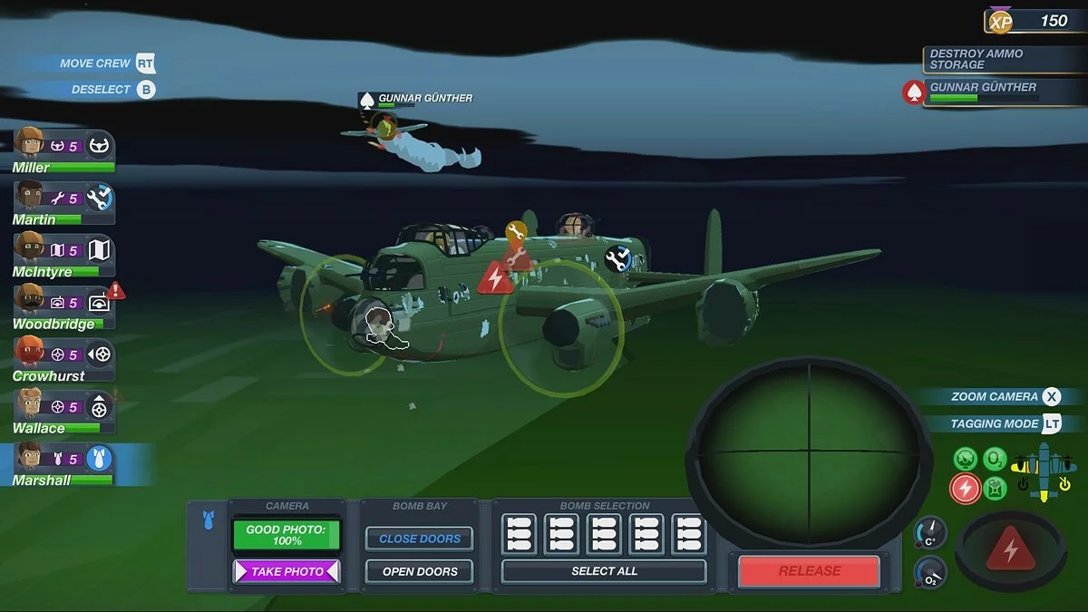 В Bomber Crew вы возьмёте под управление экипаж большого бомбардировщика времён Второй мировой войны. Придётся тщательно следить за каждой деталью, от топлива и патронов до гидравлики. Самолёт можно кастомизировать: изменить расцветку, нанести рисунок и не только. В каждой миссии вам предстоит столкнуться со множеством опасностей, от вражеских бойцов и зениток до плохой погоды и нехватки кислорода.