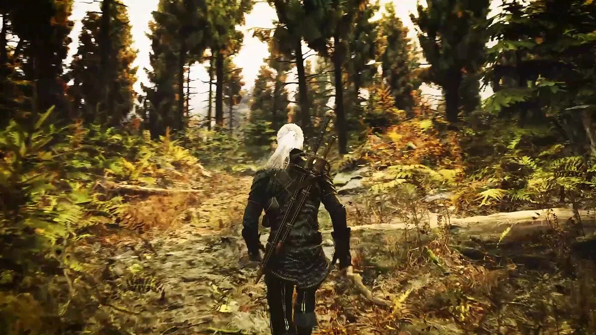 В ролике показан геймплей за Геральта, который исследует сельскую местность и натыкается на пожар. Есть режим как от третьего лица, так и от первого.