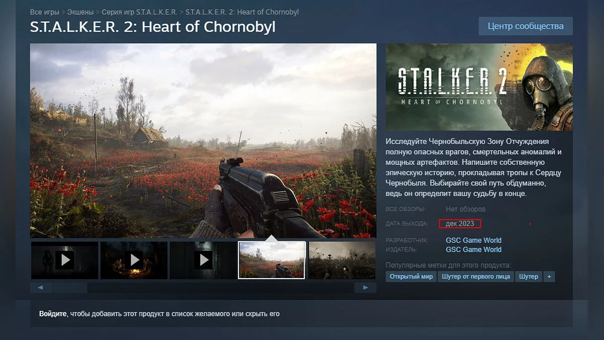 13 июня разработчики S.T.A.L.K.E.R. 2 подтвердили новость о переносе игры: релиз и правда состоится только 2023 год. Сегодня пользователи Steam заметили обновленное релизное окно — декабрь 2023-го.