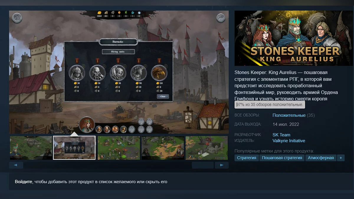 Добавить Stones Keeper: King Aurelius в свою библиотеку Steam можно здесь.