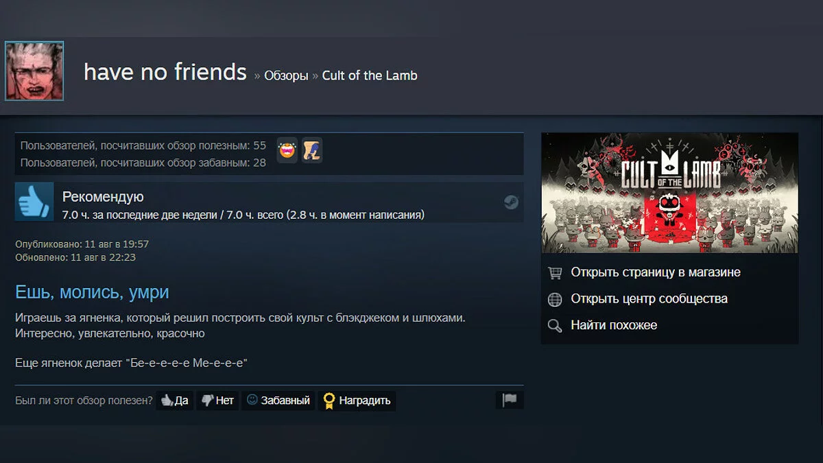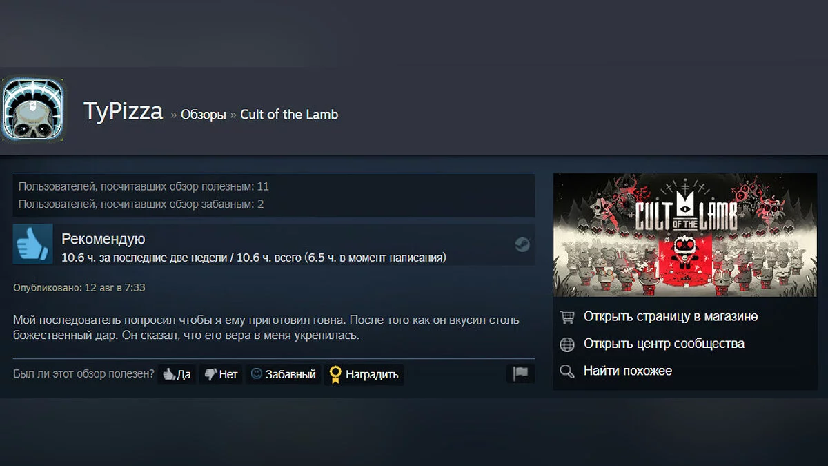 «Всегда мечтал о таком геймплее» и «Понравилось всё» — Cult of the Lamb взорвала Steam и собрала море положительных отзывов