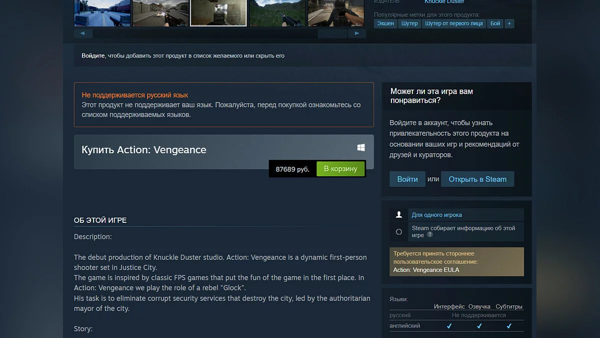 Примечательно, что на момент написания новости проект продается за 87,6 тысяч рублей. Вероятно, это какой-то баг с ценой, ну или разработчики решили таким образом просто привлечь внимание к своему проекту.