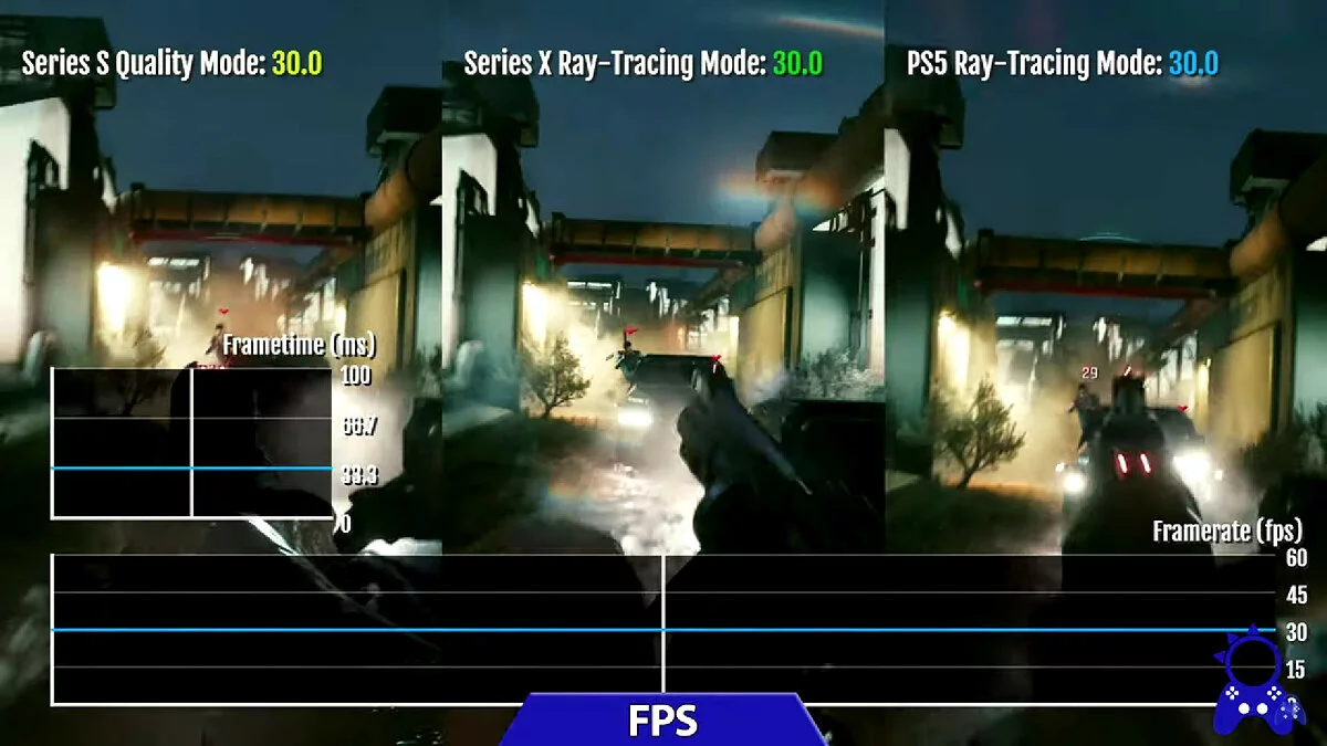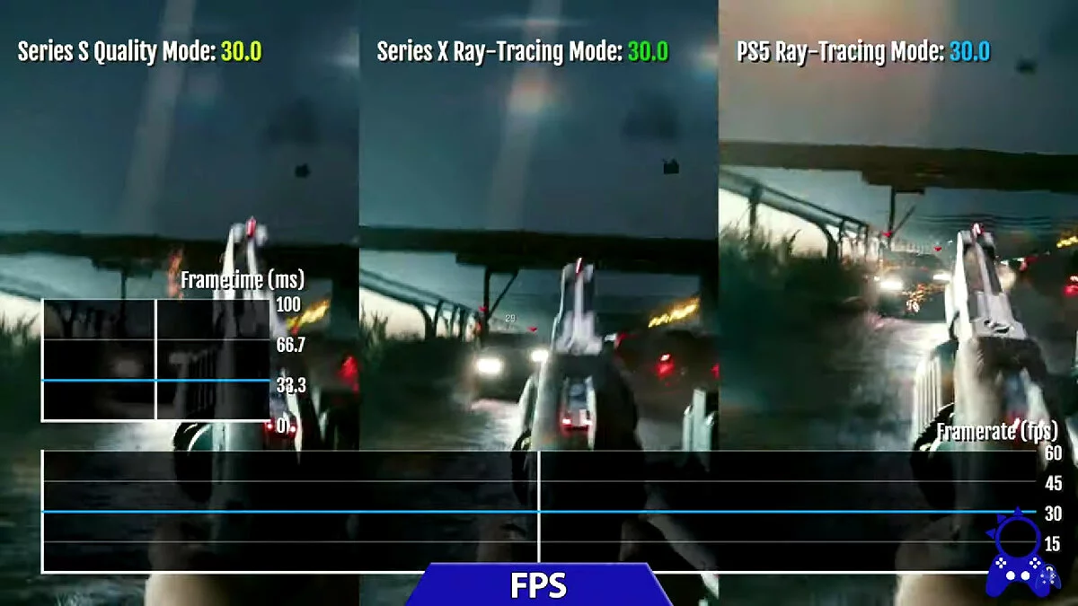 Видео демонстрирует тени, отражения, дальность прорисовки, освещение, количество NPC в кадре и частоту кадров. К слову она практически никак не изменилась на всех трех консолях — 30 FPS в режимах качества и трассировки лучей, а также 60 FPS в режиме производительности с редкими просадками на 1-2 FPS.