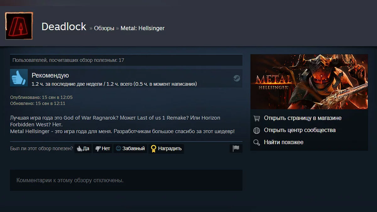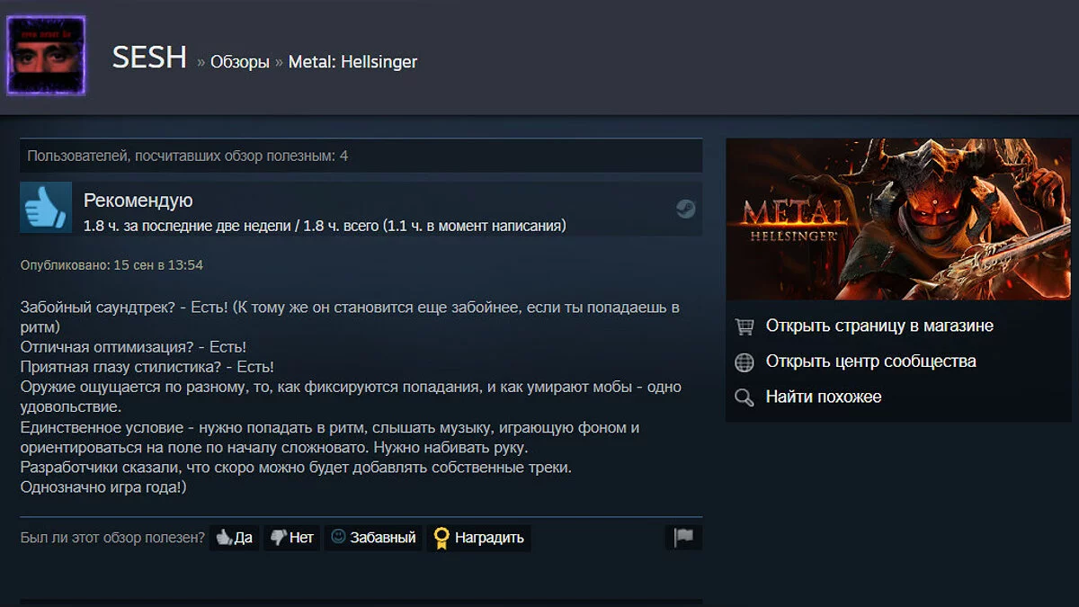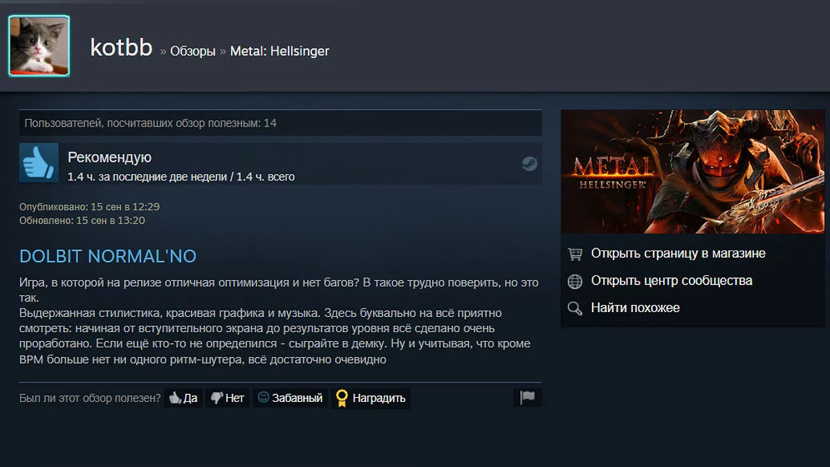 Сегодня (15 сентября) на PC и консолях вышел новый шутер от первого лица под названием Metal: Hellsinger. В первые же часы проект получил очень положительные отзывы от геймеров в Steam. На момент написания новости его рейтинг составляет 99%.