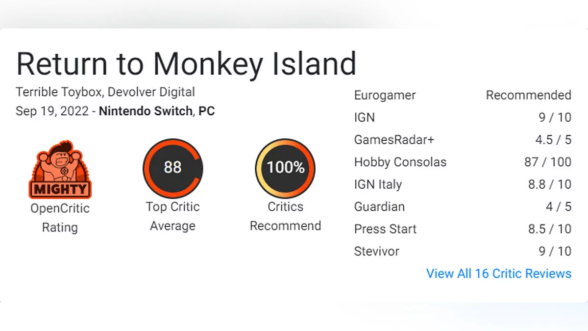 На ПК и Nintendo Switch состоялся релиз Return to Monkey Island — новой части культовой серии приключенческих квестов про пиратов. В России игра, к сожалению, не доступна. При этом в ней присутствуют русские субтитры.