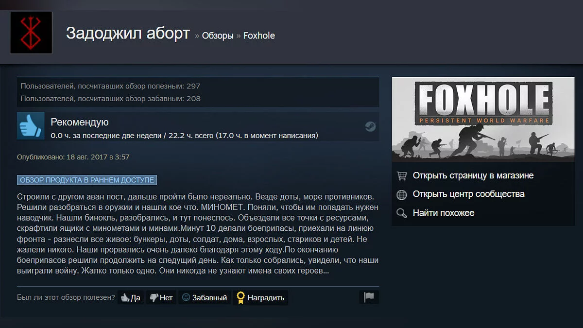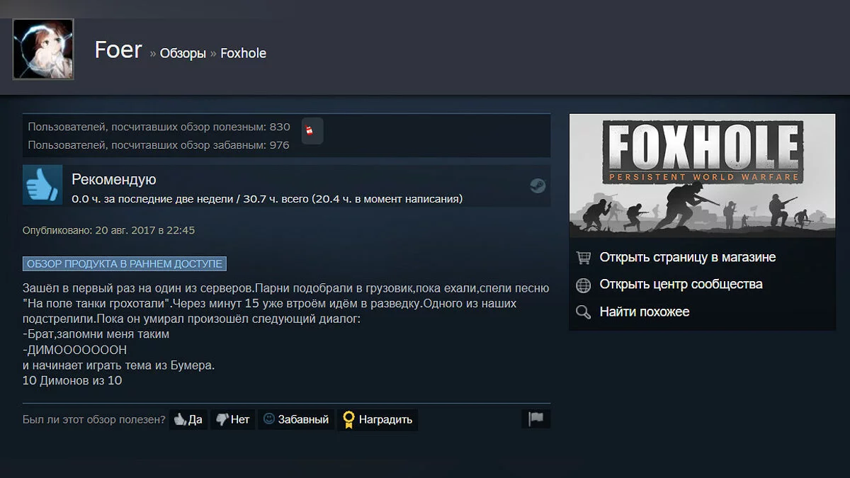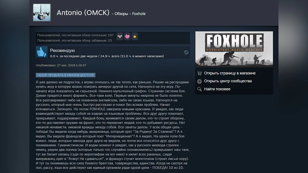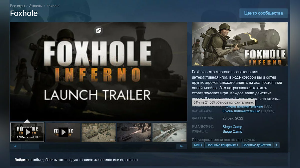 Купить Foxhole можно в Steam за 386 рублей с учетом скидки 25% (действует до 5 октября). Напомним, до 30 сентября на PC временно бесплатно доступна другая игра про Вторую мировую войну — Hearts of Iron 4.