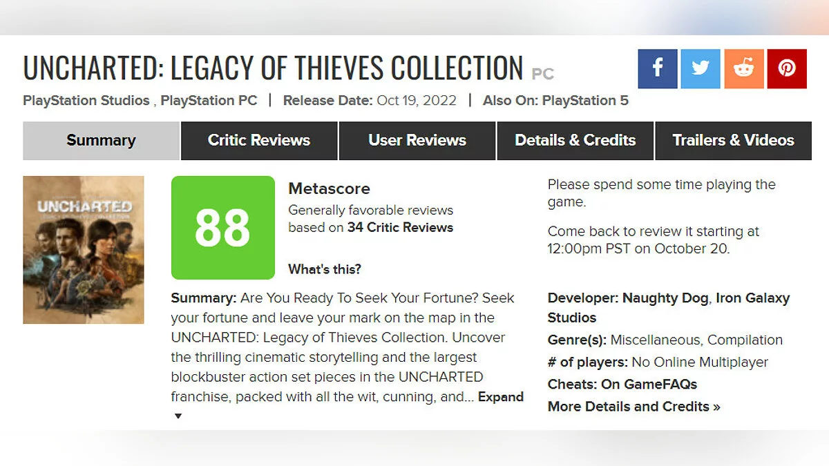 PlayStation потеряла один из лучших эксклюзивов. Uncharted 4 вышла на ПК и получила 90% рейтинга