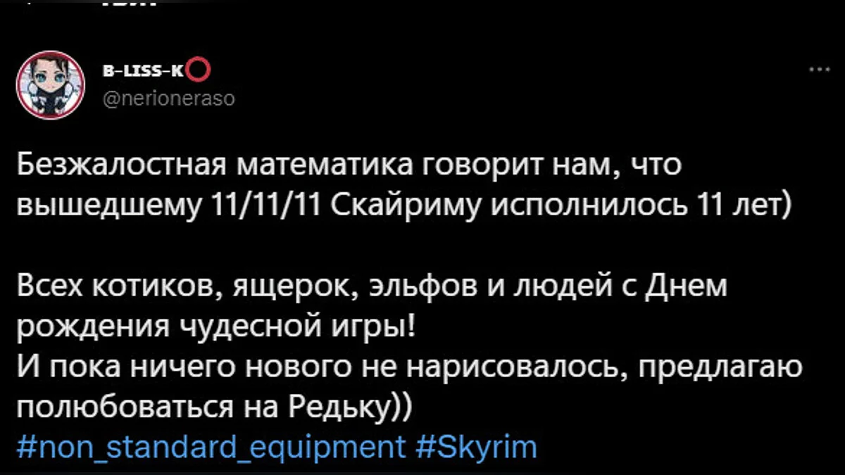 Hey, you, you're finally awake! Сегодня исполнилось 11 лет с момента выхода The Elder Scrolls 5: Skyrim — игра вышла в красивую дату 11.11.11. Одну из главных игр прошлого десятилетия уже поздравили как разработчики, так и фанаты.