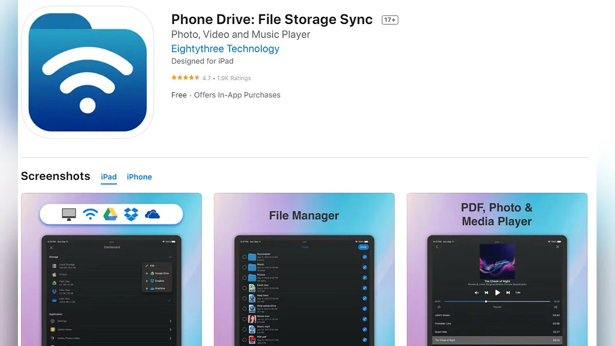 - Phone Drive: File Storage Sync — программа, позволяющая использовать устройство в качестве облачного хранилища данных (загрузить бесплатно);
