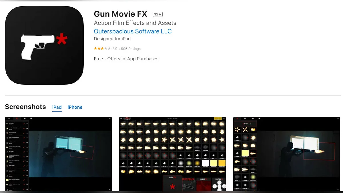 - Gun Movie FX — программа, которая позволит пользователям редактировать ролики и дополнять их эффектами выстрелов из оружия (загрузить бесплатно).