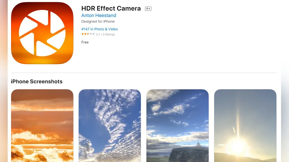 - HDR Effect Camera — программа, позволяющая включить HDR-эффект при съемке (загрузить бесплатно);