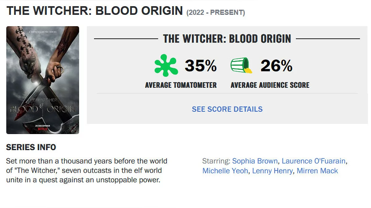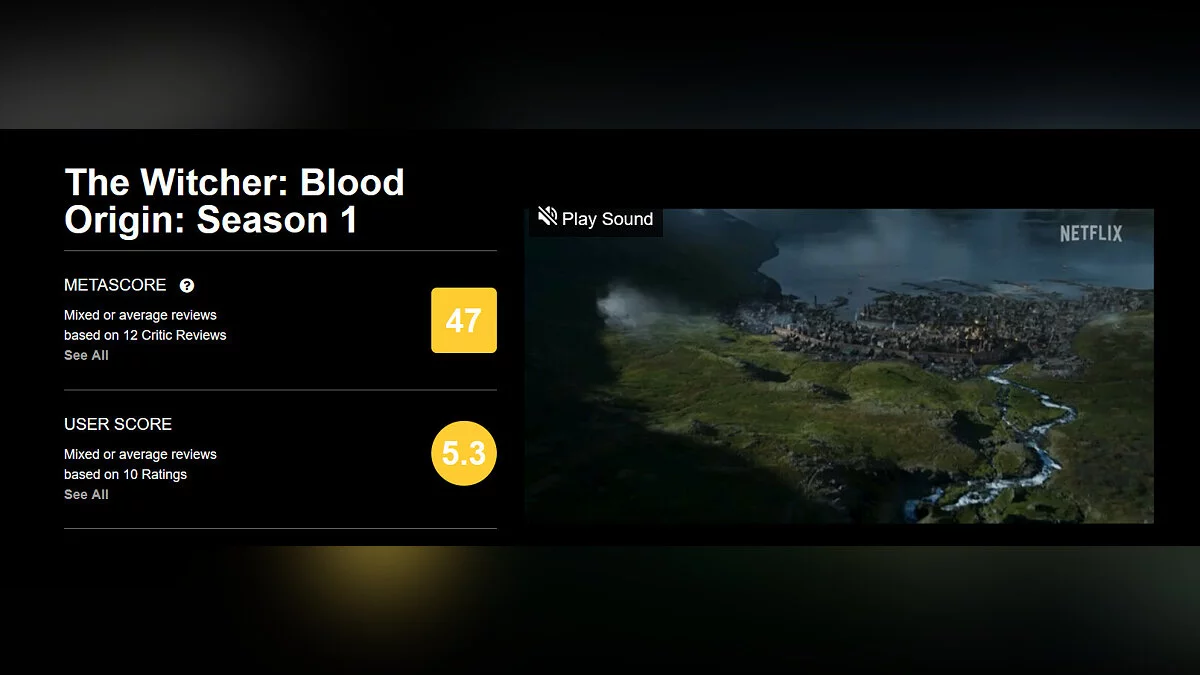На данный момент у этого проекта самые низкие оценки среди других сериалов по «Ведьмаку».
