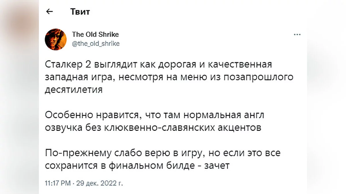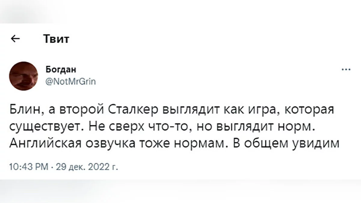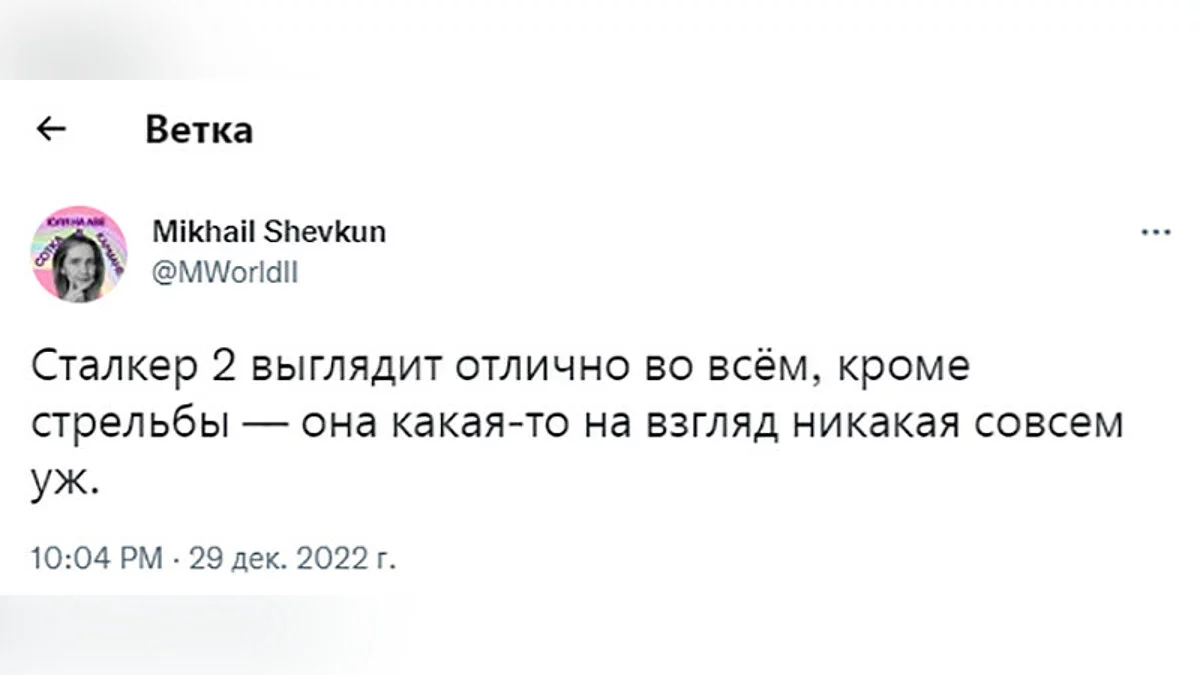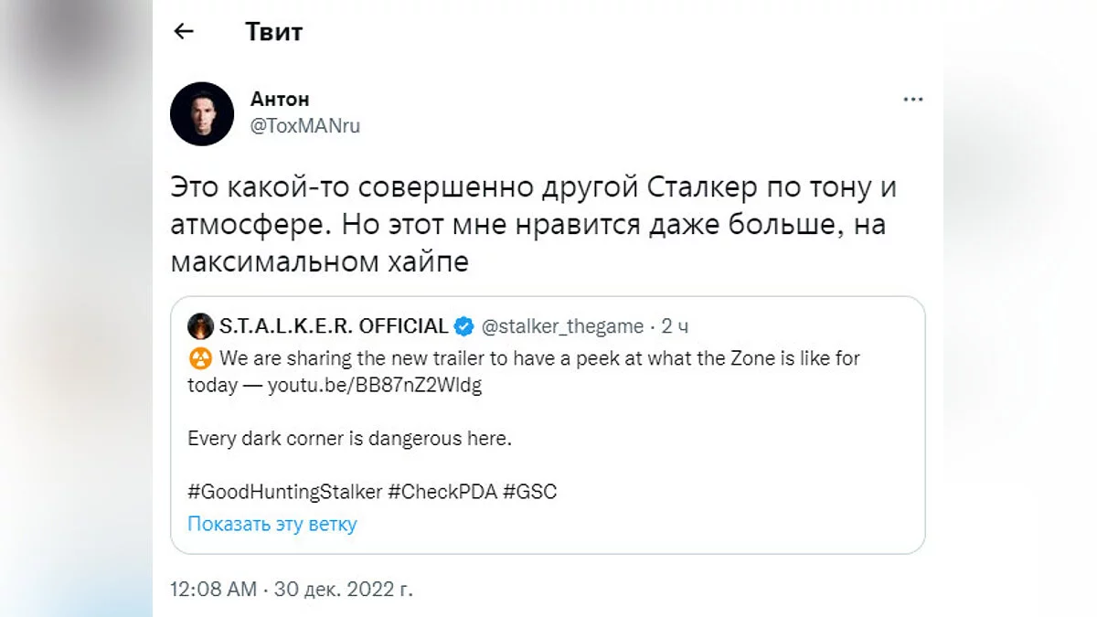 «На самом деле трейлер мне понравился, я обязательно сыграю, с одним большим НО. Без мысли о том, что это сталкер», — sigsg.
