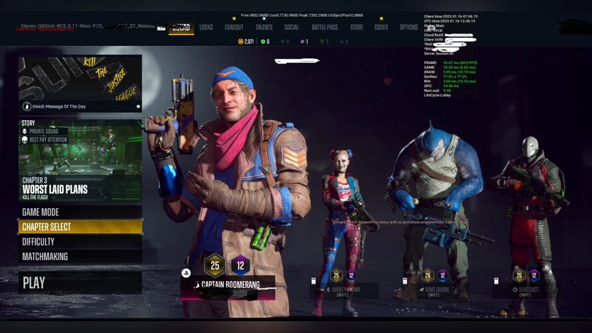 В сеть утек потенциальный кадр из Suicide Squad: Kill the Justice League от авторов «аркхэмской» трилогии про Бэтмена. Судя по данным в углу экрана, это актуальный билд, сделанный 16 января.