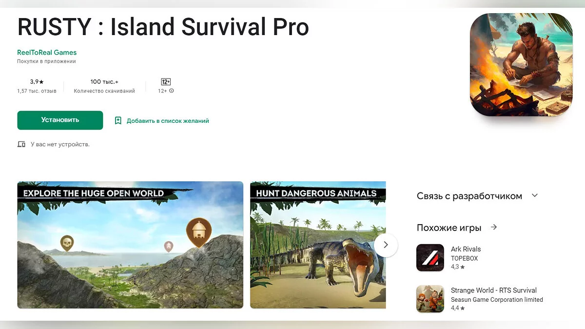 - RUSTY: Island Survival Pro — выживач от первого лица с открытым миром, действие которого разворачивается на тропическом острове. Игроку предстоит бороться за свою жизнь, строить различные объекты и крафтить инструменты (загрузить бесплатно).