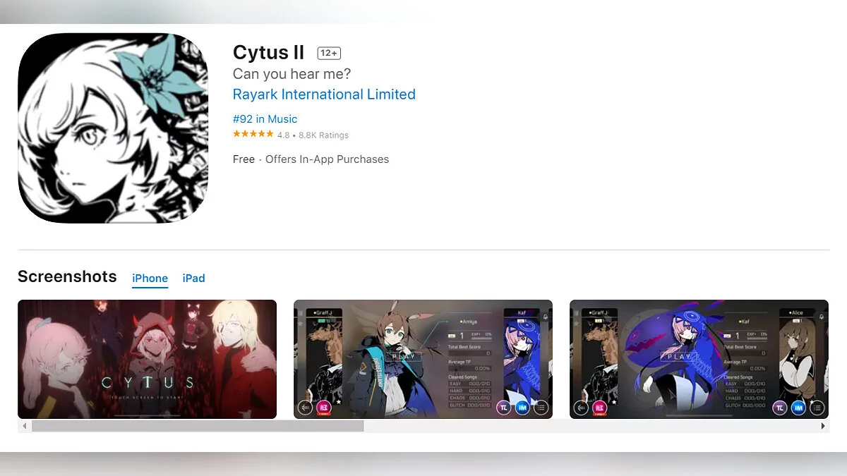- Cytus 2 — анимешная ритм-игра, действие которой разворачивается в виртуальном мире будущего (загрузить бесплатно);