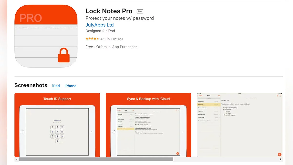 - Lock Notes Pro — программа для создания заметок, доступ к которым можно защитить паролем (загрузить бесплатно);