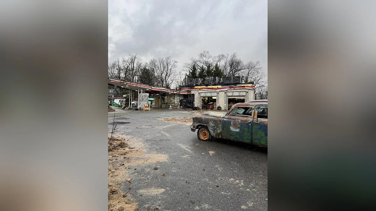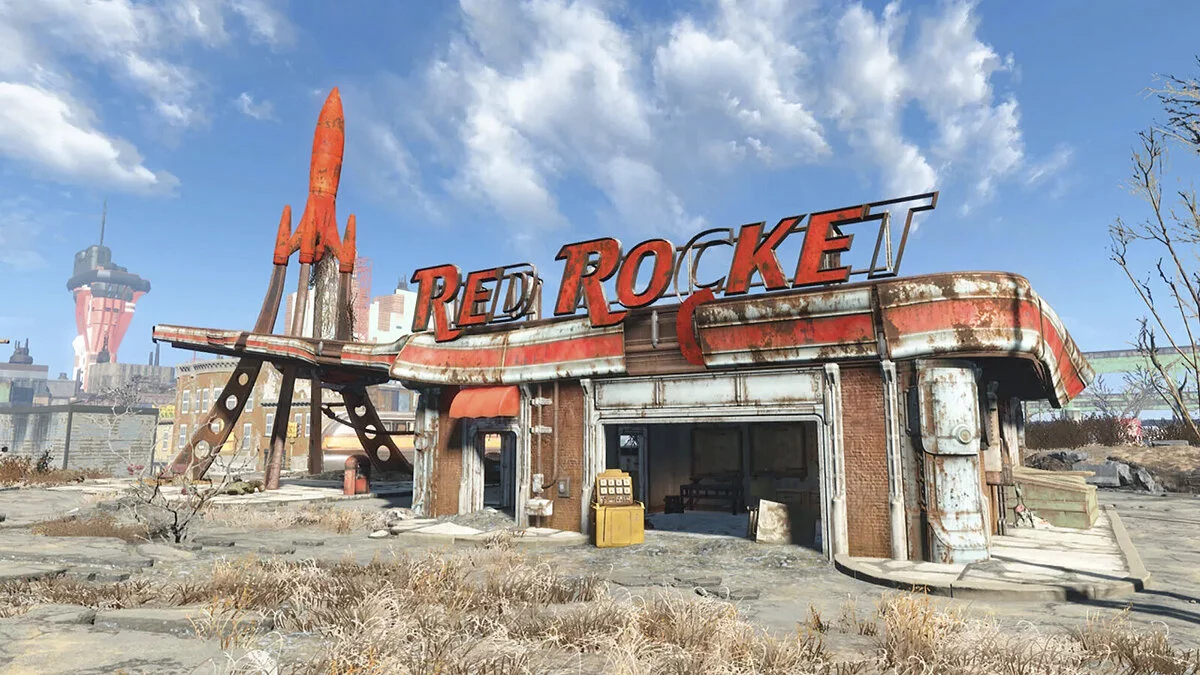 В сети появились свежие фотографии со съемок сериала Fallout. На них можно увидеть автомобильную заправку, которая внешне напоминает Red Rocket из Fallout 4.
