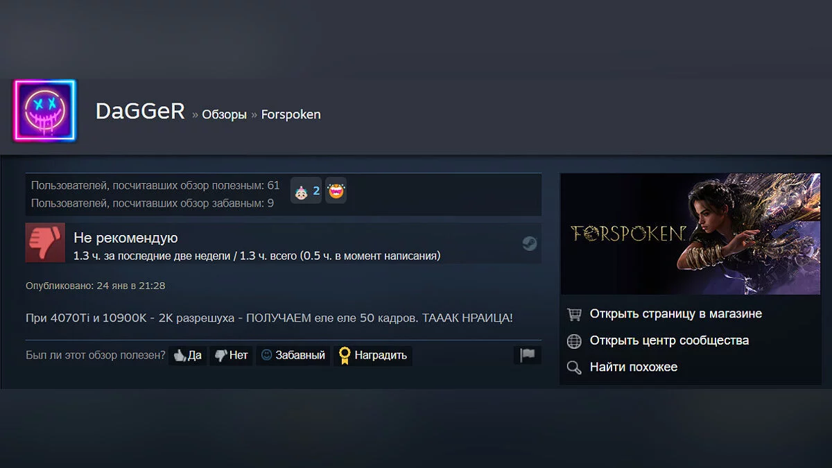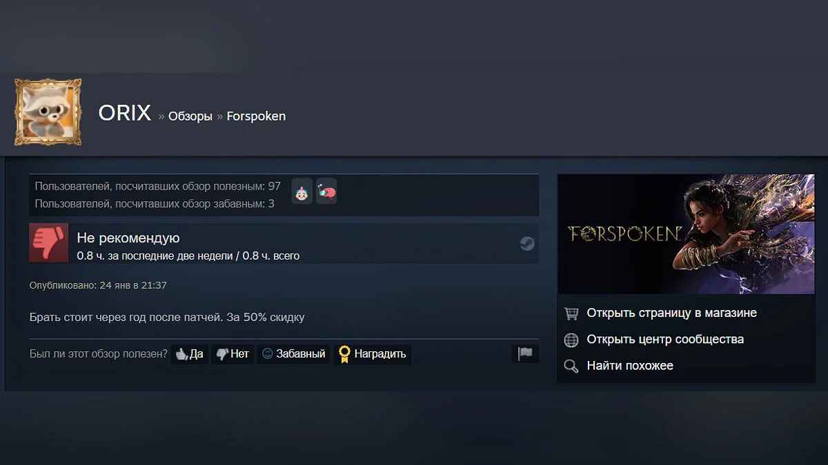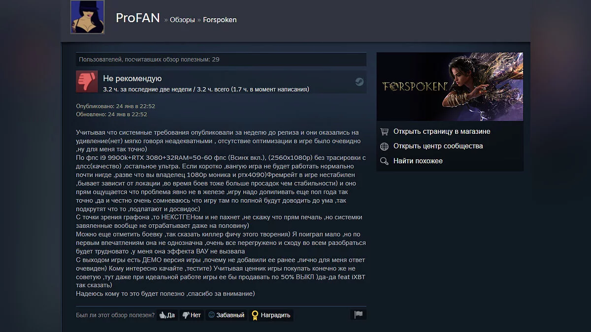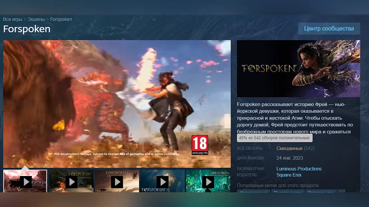 На момент написания новости рейтинг Forspoken составляет 48%.
