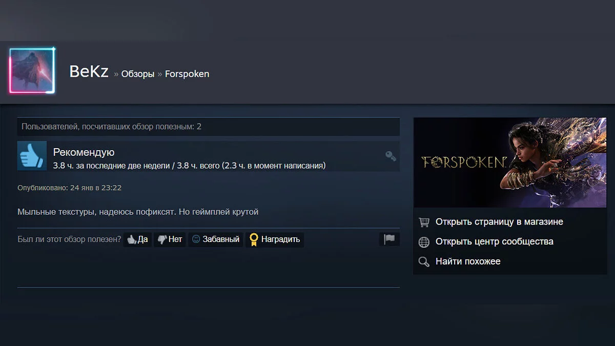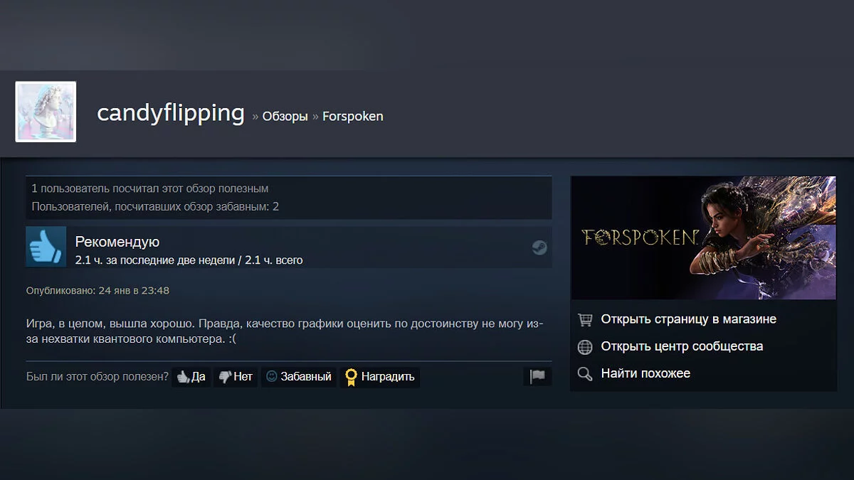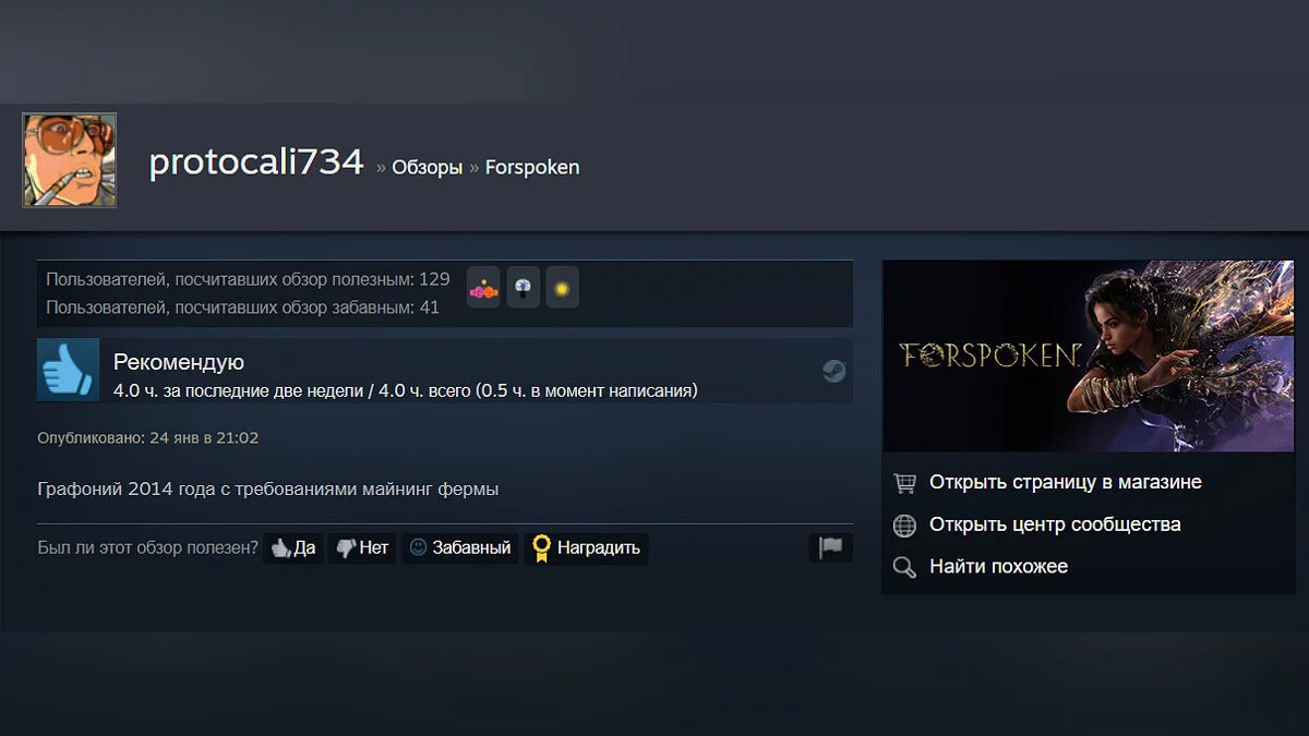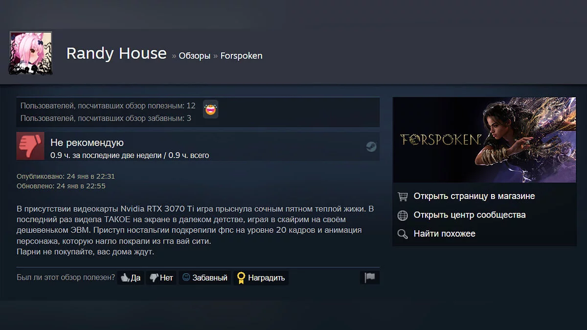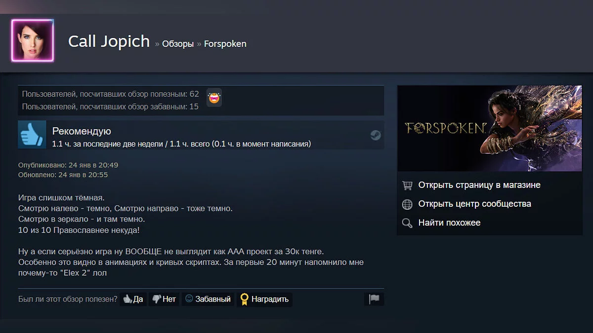 На момент написания новости рейтинг Forspoken составляет 48%.