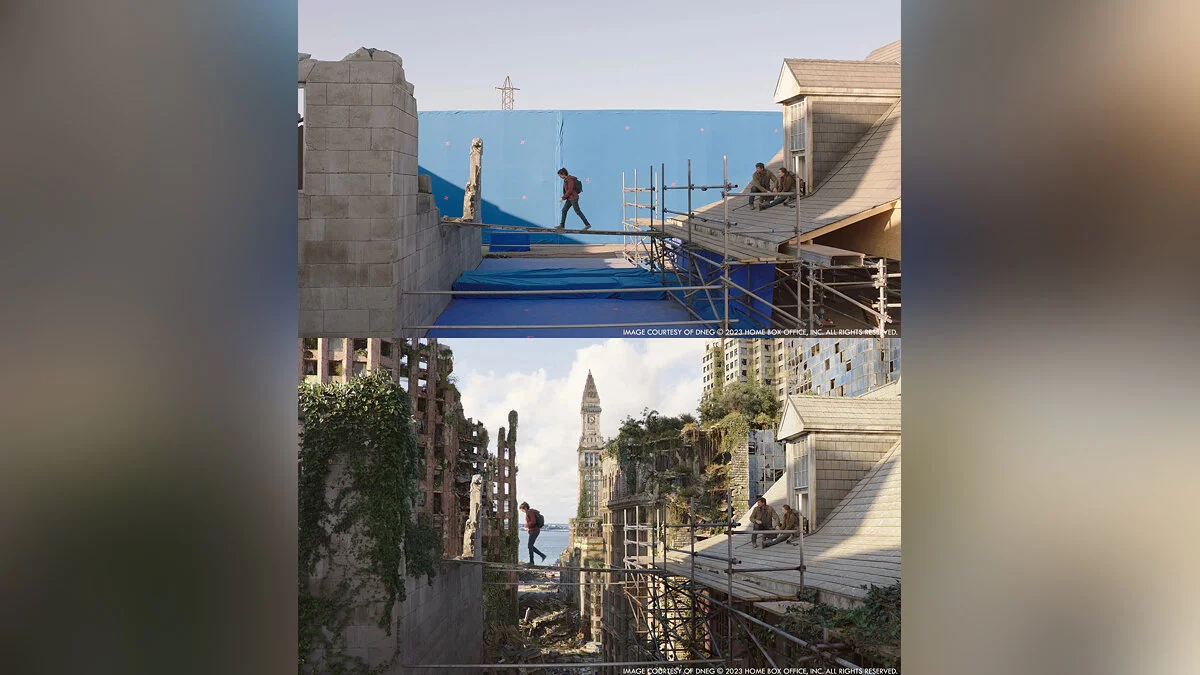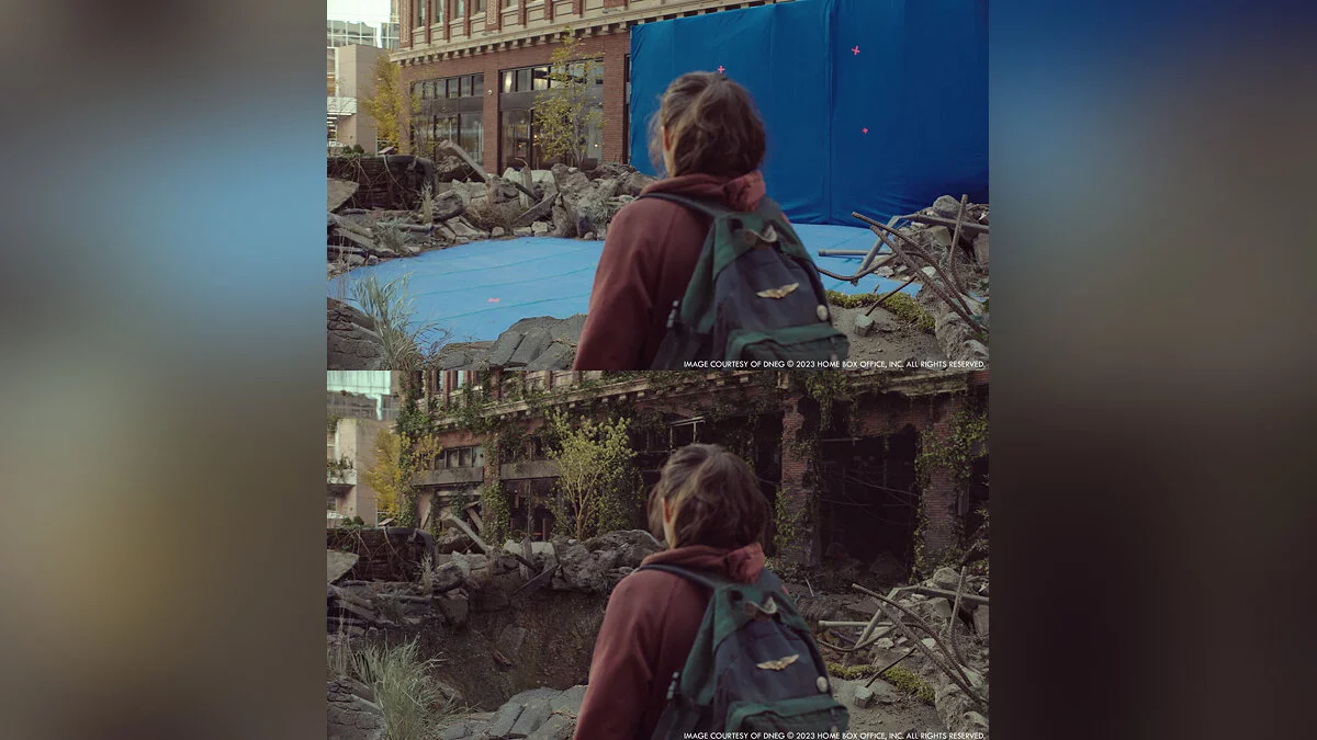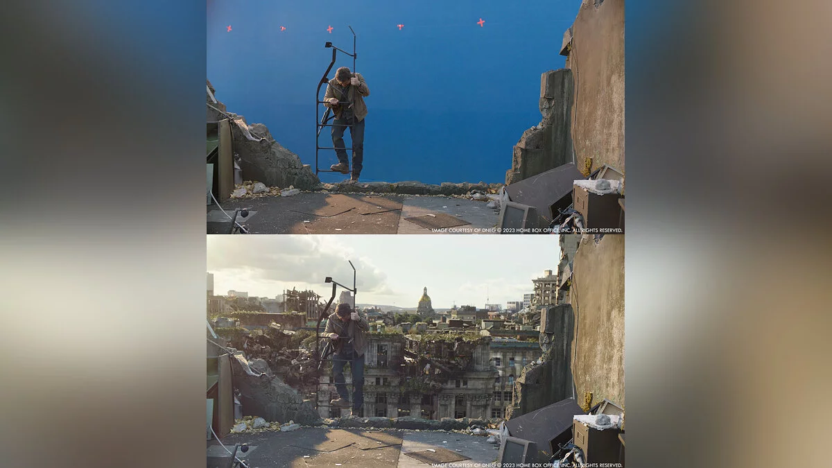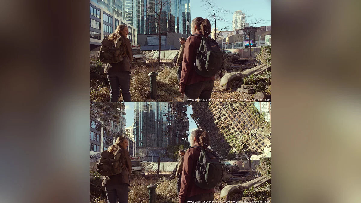 Портал The Art of VFX опубликовал кадры сериала по The Last of Us без компьютерной графики и сравнили их с финальными сценами. Судя по изображениям, авторы отлично поработали над спецэффектами.