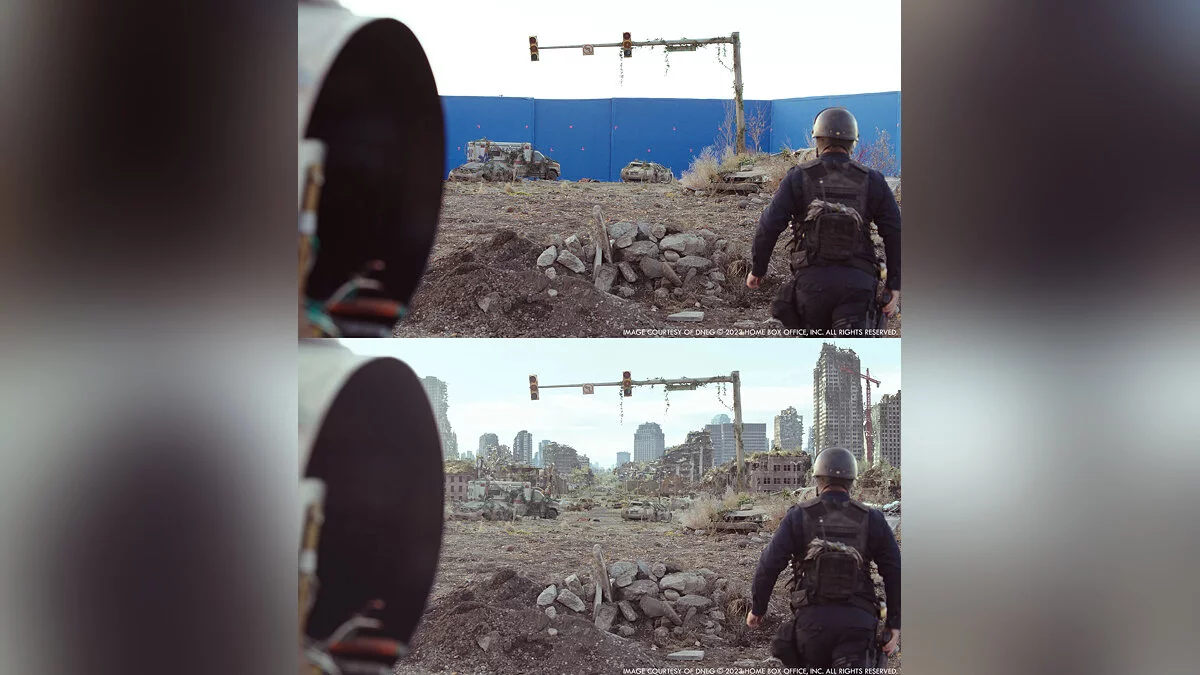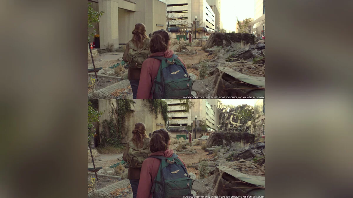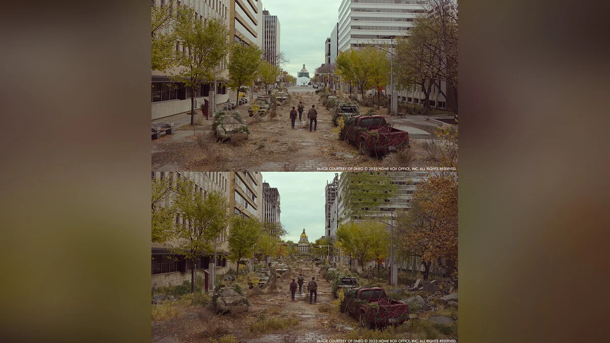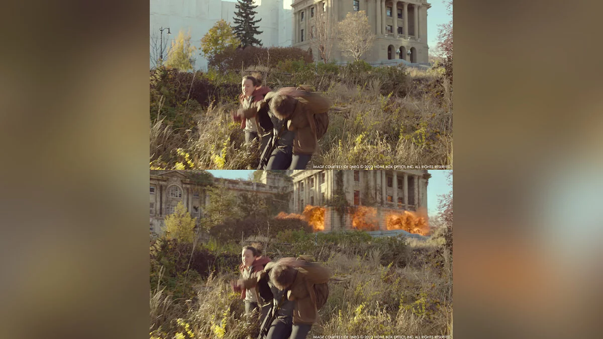 Портал The Art of VFX опубликовал кадры сериала по The Last of Us без компьютерной графики и сравнили их с финальными сценами. Судя по изображениям, авторы отлично поработали над спецэффектами.