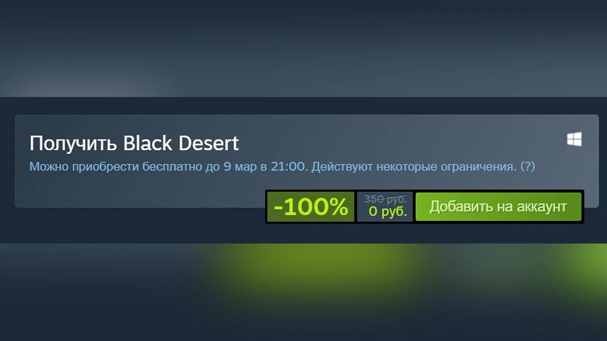 В цифровом магазине Steam компания Pearl Abyss проводит бесплатную раздачу своей MMORPG под названием Black Desert, которая до начала акции стоила в этом сервисе 350 руб.